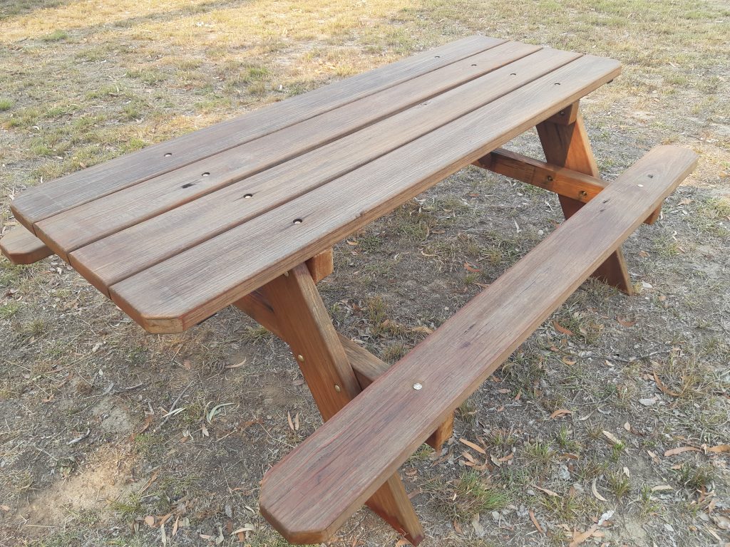 With outdoor tables and chairs that withstand the elements, it's easy to serve dinner outside.